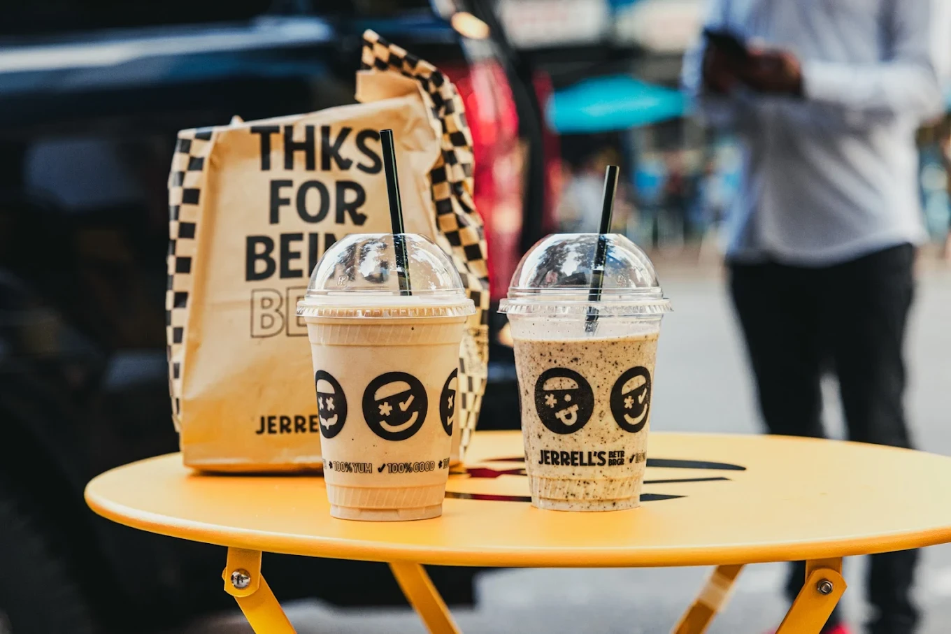 Though he’s no longer in the kitchen, Jerrell is deeply hands-on with the brand’s direction. “I try to stay behind the scenes and let my team run the kitchen,” he says. “That allows me to focus on growing the brand.” Most days are spent creating content, developing ideas, and leveraging the power of social media. It’s a strategy that’s worked. With help from his PR team early on, Jerrell launched skits on TikTok that went viral and built the brand’s cult following. Collaborations followed, including a high-profile partnership with United Airlines, which featured Jerrell’s burger in their Newark airport lounge—the first time United ever partnered with an outside restaurant. Pop-ups with Lincoln Center and an upcoming project in Paris keep the momentum going. “If that goes well, it might turn into something long-term,” he says.