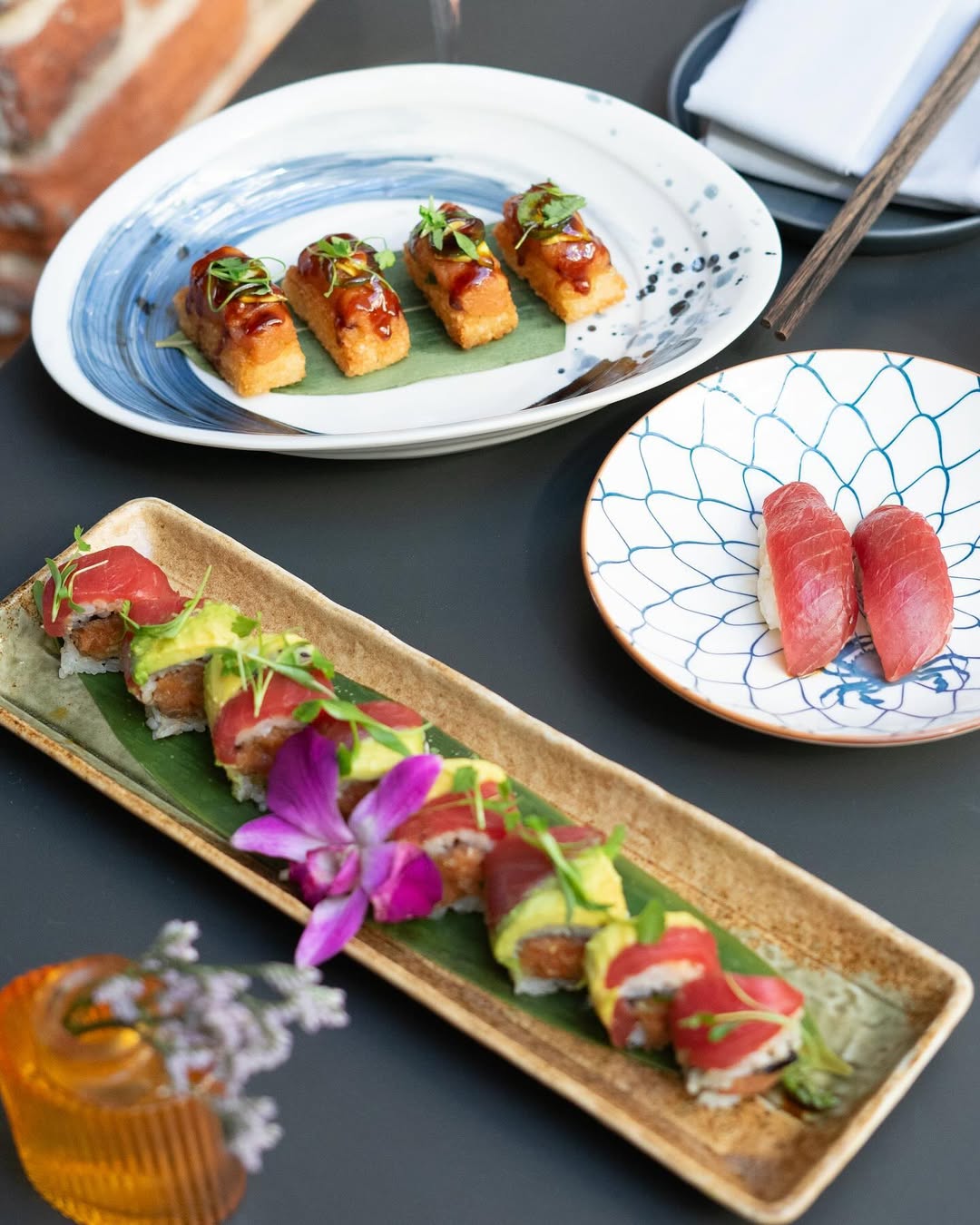 • Abbot Kinney Roll – A signature roll featuring yellowtail, salmon, and spicy tuna, named after the street where Ōwa resides.