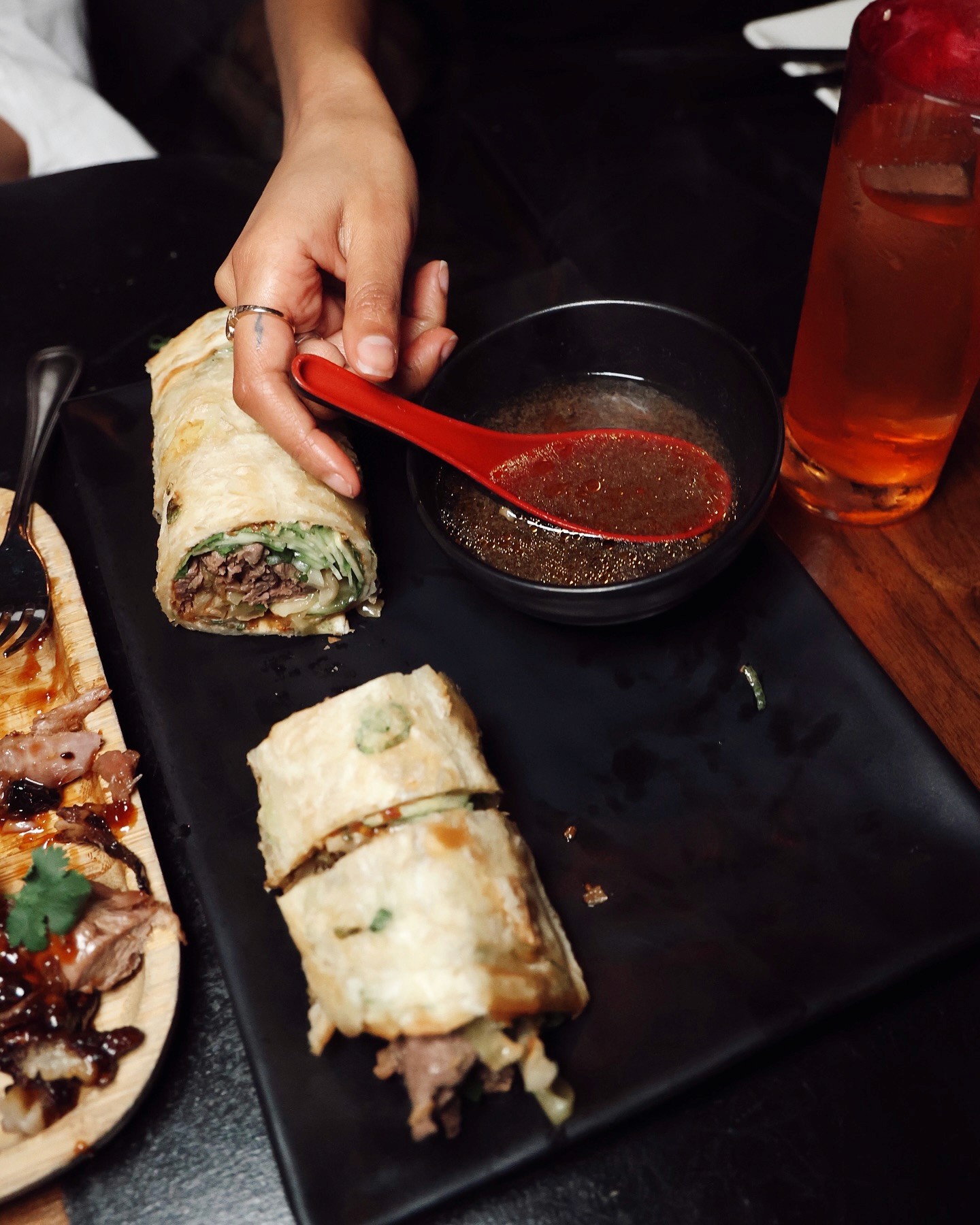 But if there’s one dish that defines David’s cooking, it’s the BBQ pork bao. Originally inspired by a desire to serve Peking duck, he pivoted after a friend warned him about the logistical challenges. Instead, he developed a labor-intensive process that braises the pork for four hours, air-dries the skin until crisp, and then deep-fries it before tossing it in a house-made barbecue sauce. The result? A perfect bite of crispy, tender, and flavorful pork tucked into a pillowy bao with coleslaw, sauce, and hot mustard. “It sounds crazy, but that’s how I grew up—eating things with bones, with your hands, and sharing with friends,” he says.