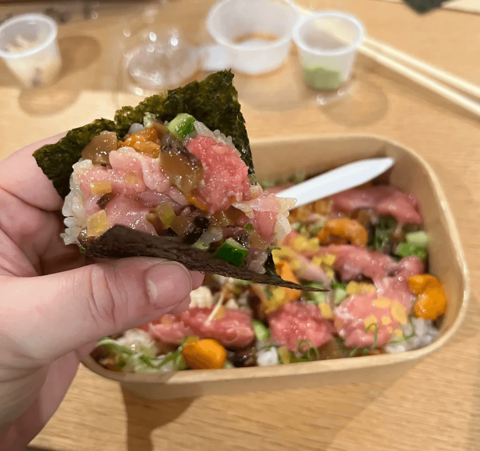 Positioned near Koreatown, Woo noticed a major gap: premium sushi for busy office professionals wasn’t available for lunch. He devoted three months to perfecting his sushi rice recipe incorporating mushroom-infused umami and a hint of sweetness into his vinegar blend. His Tuna & Salmon Chirashi quickly became the bestseller, priced around $20 and complete with seasonal appetizers, lemon, and miso soup: a hit with customers seeking fresh, full-flavored meals on the go .