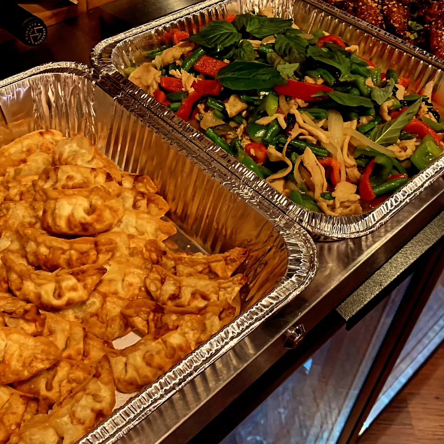 Among the crowd favorites are the Thai Garlic Wings, crispy and packed with flavor, and the Crab Rangoon, a creamy, indulgent starter. Chicken Satay skewers are also a must-try, served with a rich peanut sauce that’s made in-house.