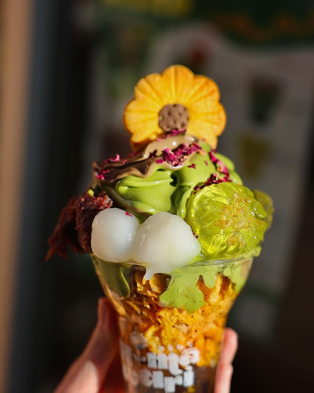 🌻 Our Soft Serve Parfait—it’s completely homemade, from the matcha and hojicha layers to the cookies on top. Each one is unique!