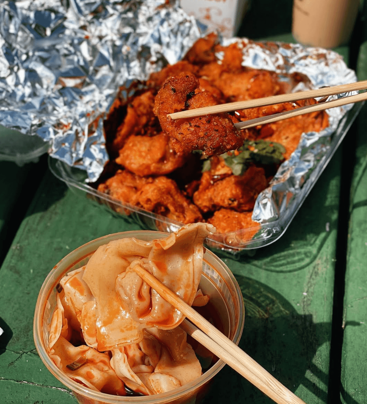 If you’re visiting for the first time, Kenny suggests starting with three of their biggest crowd-pleasers: the deep-fried chicken wings with explosive chili pepper, the fish fillet in flaming red oil, and the orange chicken. The wings arrive buried under a mountain of dry chili peppers — smoky, tingly, and addictively crunchy.